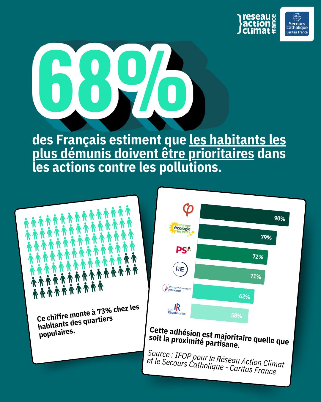 - 68 % plébiscitent la priorité donnée aux plus démunis dans les politiques locales de lutte contre les pollutions.
